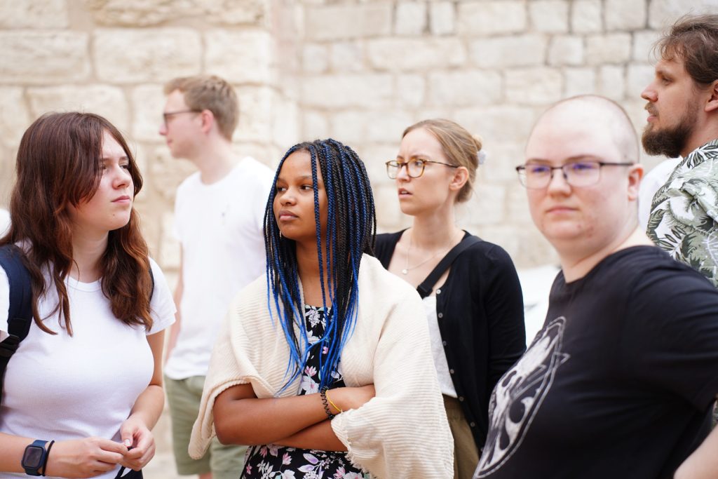 Der erste Tag (Samstag, 30. September) im Heiligen Land führte uns in die Altstadt von Jerusalem: die Gruppe spazierte durch den Bazar zur Klagemauer,- einem der heiligsten Orte des Judentums. Weiter führte uns der Weg Richtung Damaskustor und dann zur Via Dolorosa. An der Kreuzwegstation der Gefangennahme Jesu hielt Pfarrer Stefan Salzmann eine erste, viertelstündige Andacht. Nach einem gemeinsamen Mittagessen in einem einfachen Restaurant im arabischen Viertel gab es Zeit zur eigenen Erkundung der Altstadt. Vor dem Abendessen wurde dann in der Kapelle des Hospizes ausgiebig geprobt, um die Stimmen für die musikalischen Herausforderungen der Konzertreise vorzubereiten.