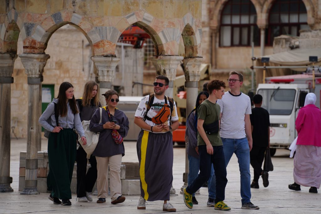 Am Dienstag, den 3.10.2023, wurden wir an der Erlöserkirche von KMD Peter-Michael Seifried empfangen. Er hatte sich erboten, unsere Reisegruppe die Via Dolorosa an den verschiedenen Kreuzwegstationen zum Kidron-Tal herabzuführen und dann die wichtigen christlichen Stätten den Ölberg heraufzuführen. Wir genossen eine höchst kundige, abgewogene, interessante Führung durch den Blickwinkel eines deutschen, evangelischen Kirchenmusikers. Besser kann man es gar nicht erhoffen. Die Gruppe hat unheimlich viel gesehen und erfahren, verschiedene Stationen der Via Dolorosa und dann weiter den Weg zum Ölberg hinauf: entlang an Mariä Grab, an Verratshöhle, Maria – Magdalena – Kirche (- hier hielt Pfarrer Salzmann eine Andacht – ), Dominus Flevit-Kirche, Prophetengruft, kleinem Falafelimbiss an der Himmelfahrtsmoschee und dem Höhepunkt Himmelfahrtskirche mit Turmbesteigung. Hier war nun die Gruppe am höchsten Punkt Jerusalems und hatte einen sensationellen Ausblick über Jerusalem, die Jesre´el-Ebene und zur Jordansenke hinunter. Die notwendige nachmittägliche Probe wurde mit aller möglichen Disziplin unter höchstem Krafteinsatz (gegen Müdigkeit und Schlappheit) absolviert.