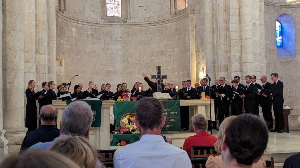 Bevor der Chor seine Arbeitswoche startete, begab er sich auf den Spuren Johann Sebastian Bachs nach Weimar und Köthen. In Weimar sang der Chor die Motette ‚Der Geist hilt unser Schwachheit auf‘ in einer ausgezeichnet besuchten Musikalischen Vesper im UNESCO-Kulturerbe Herderkirche.