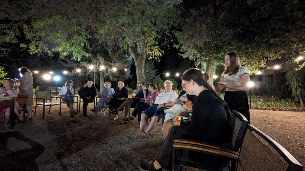 Der nächste Tag, der 4. Oktober, führte uns zuerst nach Nazareth, dem Ort an die Familie Jesu ihren Wohnort hatte. Wir besichtigten die Kathedrale über dem Wohnhaus von Josef, Maria, Jesus und seinen Brüdern. Weiter ging dann die Fahrt über Magdala, (von hier stammt Maria Magdalena), wo wir einen kleinen Falafelimbiss einnahmen, und dann zum See Genesareth. Dort besuchten wir den Berg der Seligpreisungen, – hier hielt Pfarrer Salzmann eine beeindruckende Andacht vor der sagenhaften Kulisse des See Genesareths. Wir gingen in die Kirche und sangen eine Motette in der schönen italianisierten Kirche. Wir besichtigten des Weiteren Tabgha, mit der Brotvermehrungskirche und Kafernaum mit der Synagoge, in der Jesus wohl gepredigt hat. ZU Hause in unserem Konvent, wurden wir von unseren Schwestern mit einem Grillabend im Garten erfreut.